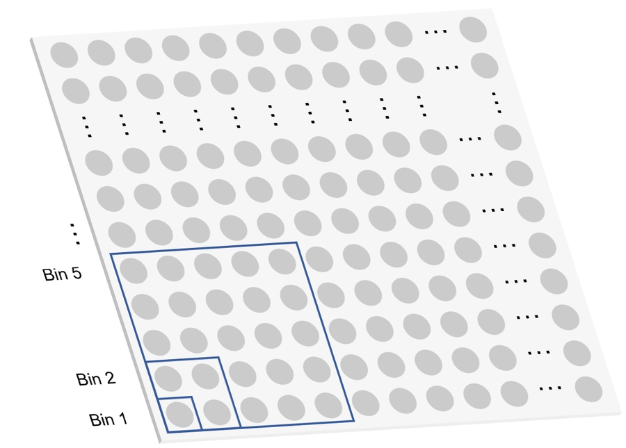 Bin (or Square Bin) is the analysis unit on the expression heatmap. A bin is a fixed-sized square in which the expression value in this square is accumulated. Bins are not overlapped.