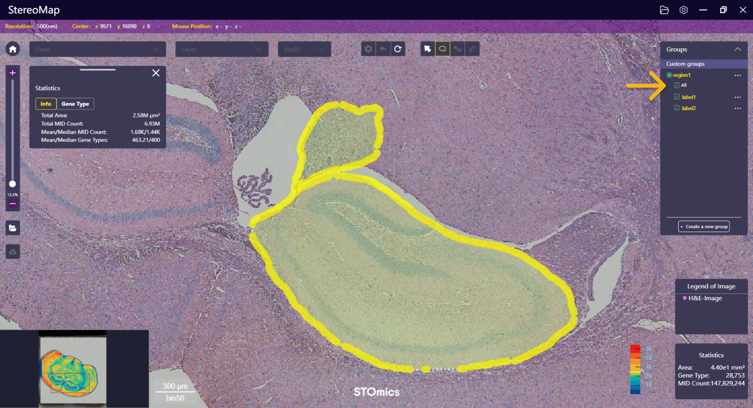 To annotate regions of interest from tissue and extract corresponding gene expression data to gain a comprehensive understanding of both the structural and functional aspects of tissue, you may prefer to start by label on H&E image based on pathohistological features.