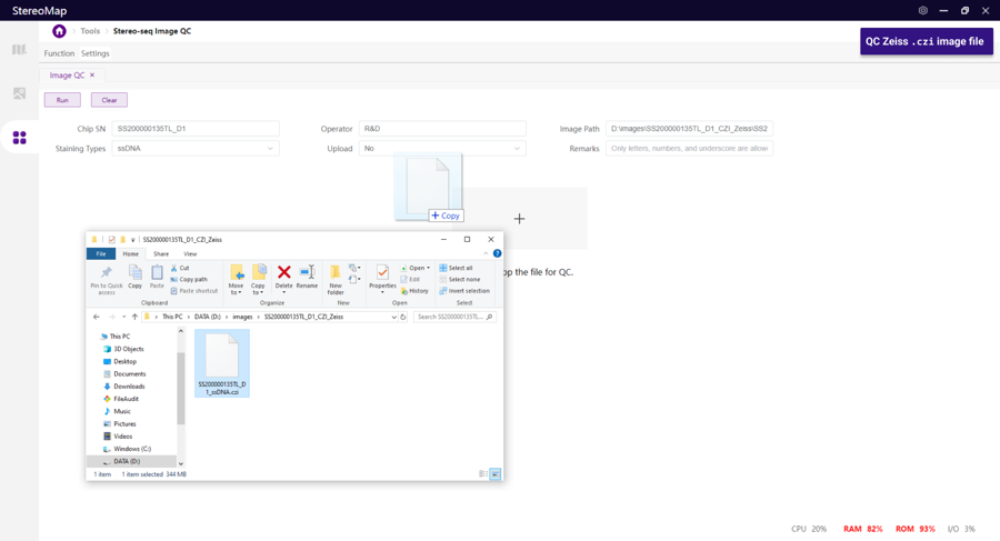 A typical QC progression time for a nuclei-staining image (10X objective, 8-bit .tif file, ~20,000 px x 20,000 px for a 1 cm x 1 cm Stereo-seq Chip) is ~1 min.