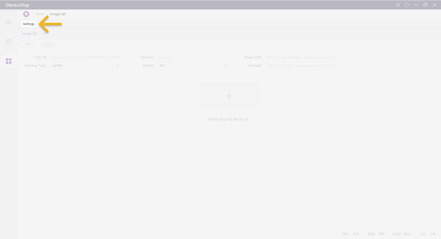 StereoMap's Image QC can be accessed from the Tools page.