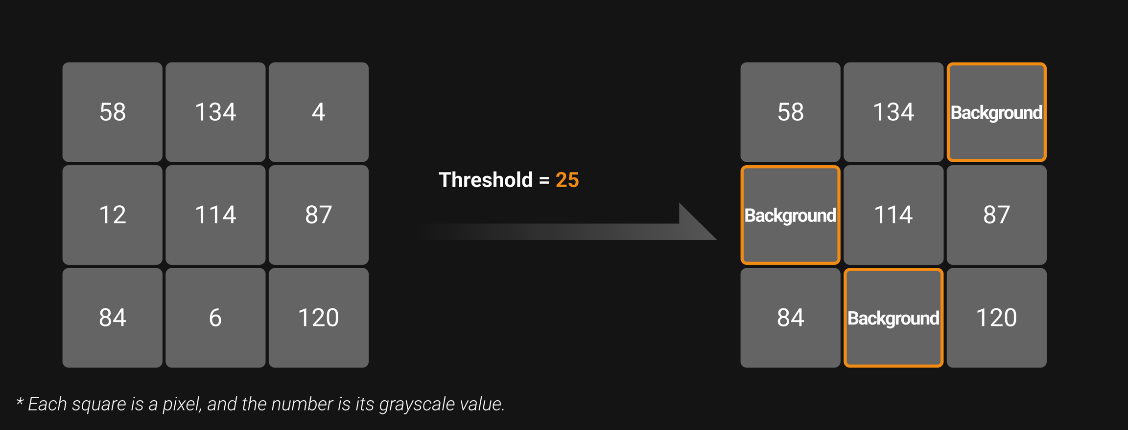 The threshold parameter is a fundamental tool for intelligent pixel classification in image processing. By setting a numeric cutoff, the algorithm separates the image into foreground and background based on pixel intensity: