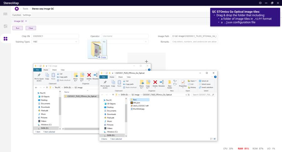 Open the image QC tool and drag the image to the window. Please refer to QC Tips Specific for Image Types section for more practical tips for proper image naming and organization to avoid processing errors.