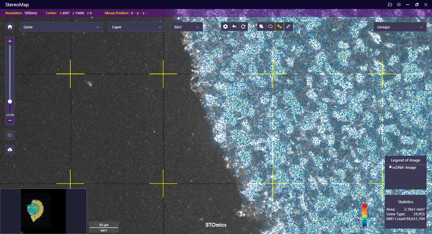 Once the regions have been well-labeled, the coordinate information can be saved and passed to `SAW reanalyze` to obtain the spatial feature expression matrix for the chosen region. Click <img src="https://917529218-files.gitbook.io/~/files/v0/b/gitbook-x-prod.appspot.com/o/spaces%2FKPjxR1Lv74t5QCTxNb8d%2Fuploads%2FsyPuHlm7h2IYO7J32G8r%2Fmore.png?alt=media&#x26;token=4b911ca8-a13f-4a70-97ef-0e89884b7440" alt="" data-size="line"> to the right of group or label name and choose **GeoJSON to lasso targeted area** to export the lasso GeoJSON file. You can find the output `YYYYMMDDHHMMSS.lasso.geojson` file in your file system under **StereoMapWorkspace** -> **Lasso** directory.